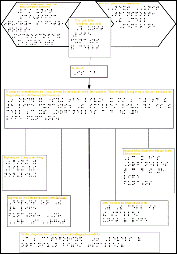 | We are not confined to 11.5 x 11 inch paper. We can produce Braille and tactile graphics at any size up to 11x17 or larger by tiling the pages together to yield one very large page. Also, step tables are seldom used because we can place tables on very wide paper. | |||||||||||||||||||||||||||||||