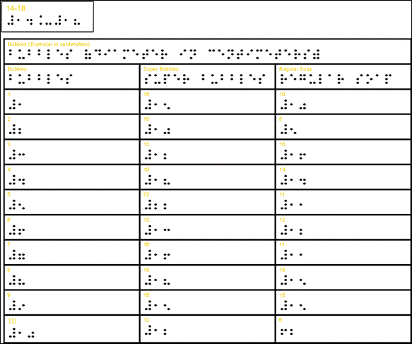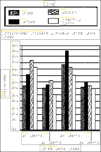 | We are not confined to 11.5 x 11 inch paper. We can produce Braille and tactile graphics at any size up to 11x17 or larger by tiling the pages together to yield one very large page. Also, step tables are seldom used because we can place tables on very wide paper. | |||||||||||||||||||||||||||||||