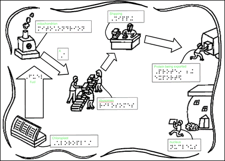 | We are not confined to 11.5 x 11 inch paper. We can produce Braille and tactile graphics at any size up to 11x17 or larger by tiling the pages together to yield one very large page. Also, step tables are seldom used because we can place tables on very wide paper. | ||||||||||||||||||||||||||||